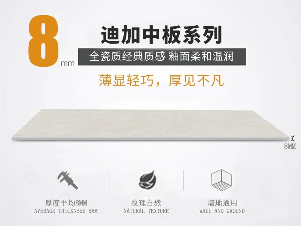 迪加瓷质中板系列集墙砖、地砖、薄板等诸多品类优势及装饰效果于一体,将成为行业的一股新锐力量,进一步冲击瓷片的市场份额,重塑产品品类格局。...